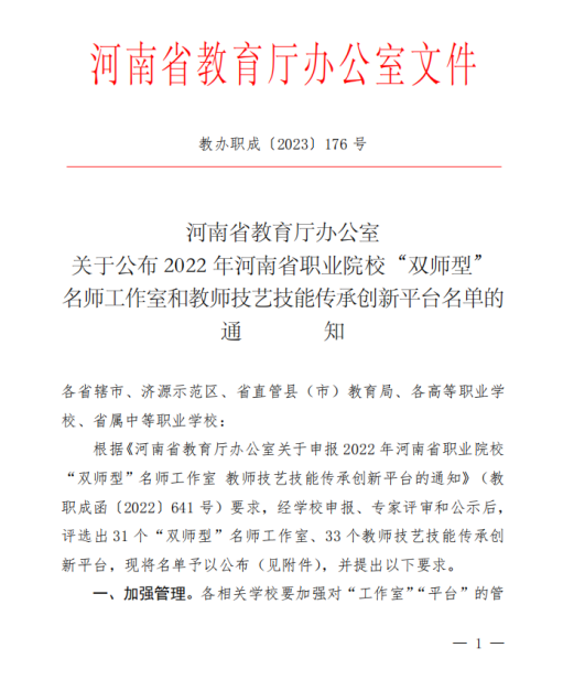 近日,河南省教育厅办公室印发了《河南省教育厅办公室关于公布2022年河南省职业院校“双师型”名师工作室和教师技艺技能传承创新平台名单的通知》(教办职成[2023]176号),公司bevictor伟德国际刘蕴教授作为主持人申报的计算机应用技术专业“双师型”名师工作室成功获批,这是公司“双师型”教师团队建设取得的又一重大成果。