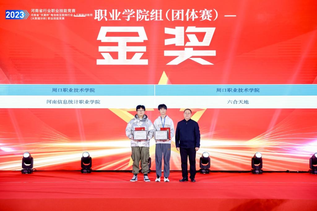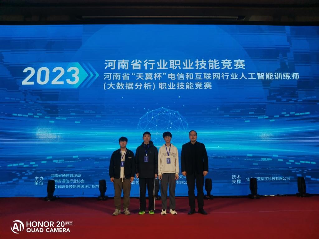 11月25日,2023年河南省行业职业技能竞赛—河南省“天翼杯”电信和互联网行业人工智能训练师(大数据分析)职业技能竞赛在郑州圆满落幕。公司bevictor伟德国际楚书来、冯腾霄两位老师指导,孙梦杰、李豪宇、李金普三名同学组队参赛,比赛中同学们沉重稳重,发挥出应用水平,最后经过三个小时的多轮比拼,以637分的成绩稳居榜首,取得职教组金奖,这也是公司在该赛项上的最好成绩。