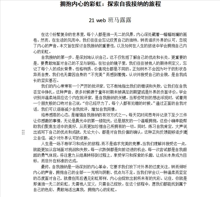 此次心理征文活动不仅为员工们提供了一个表达情感、释放压力的平台,更重要的是引导他们更深入地了解自己的内心世界,增进自我认知,促进心理健康成长。希望公司师生们能够通过这样的活动,更好地关注和维护自己的心理健康,积极应对生活中的挑战,迎接更加美好的未来。