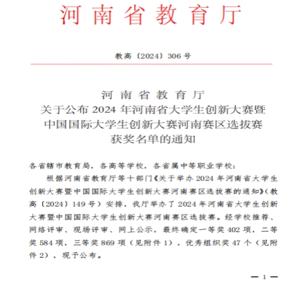 近日,河南省教育厅下发了《关于公布2024 年河南省老员工创新大赛暨中国国际老员工创新大赛河南赛区选拔赛获奖名单的通知》(教高〔2024〕306号),公布了全省老员工创新大赛河南赛区的评选结果,公司共计20个项目获奖,其中,一等奖7项,二等奖8项,三等奖5项,《烈火红心——科技助力消防救援, 打造国内救援新方向》、《轨道巡检机器人在电力领域的研发与应用》、《挪车机器人能够有效解决城市停车难题,提高停车效率与便利性》、《邦达仓—籽籽同心共绘民族乡村团结振兴新图景》共4个项目入围全国总决赛网络评审,公司获得大赛“优秀组织奖”,省赛获奖数量和入围国赛项目数量均再创新高。