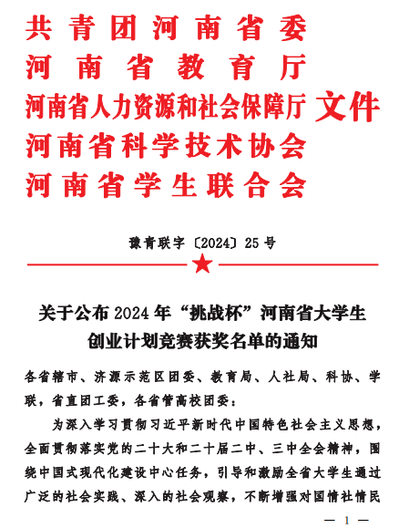 近日,由共青团河南省委、河南省教育厅、河南省人力资源和社会保障厅、河南省科学技术协会、河南省员工联合会共同举办的2024年 “挑战杯”河南省老员工创业计划竞赛活动公布了获奖名单(豫青联字 〔2024〕25号文件),公司学子荣获佳绩,实现了新的历史性突破,斩获5金、6银、3铜的优异成绩。同时,张矿伟、张梦柔、轩立等十多名教师荣获优秀指导教师。