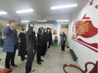 完成接收议程之后,由员工支部宣传委员王建玲老师领誓,新接收的员工预备党员们在党旗下庄严宣誓,员工支部全体党员教师面向党旗,重温了入党誓词。