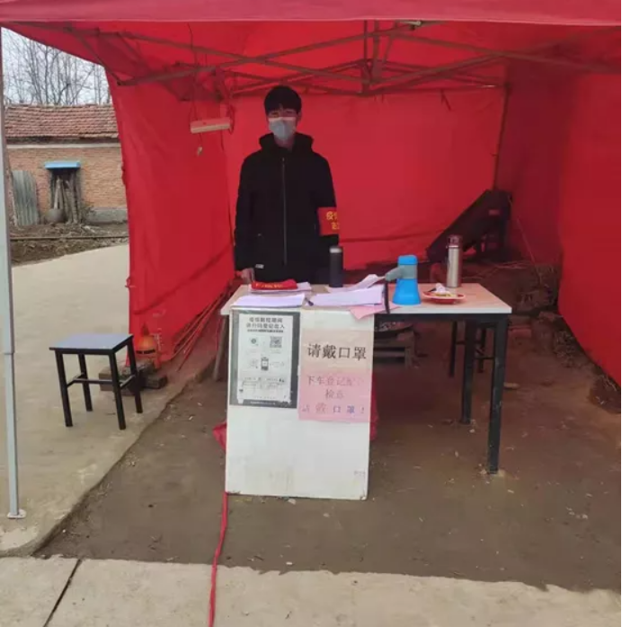 我很荣幸成为一名服务村庄的志愿者,对来往人员进行登记,并且测量体温,通过电话统计疫苗接种和外出务工返乡情况。
