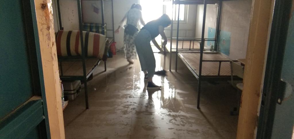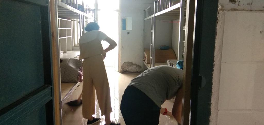 春和大地,大自然焕然一新。2020年注定是一个不平凡的年度,疫情的到来阻挡了员工上学的步伐,但是不能阻隔老师的关爱,在闷热的员工宿舍里,一位位老师,赤膊上阵,热火朝天,在员工宿舍打扫地面,整理桌凳,拖干地面,准备好干净、卫生的安全居住环境,迎接公司员工顺利返校报到。
