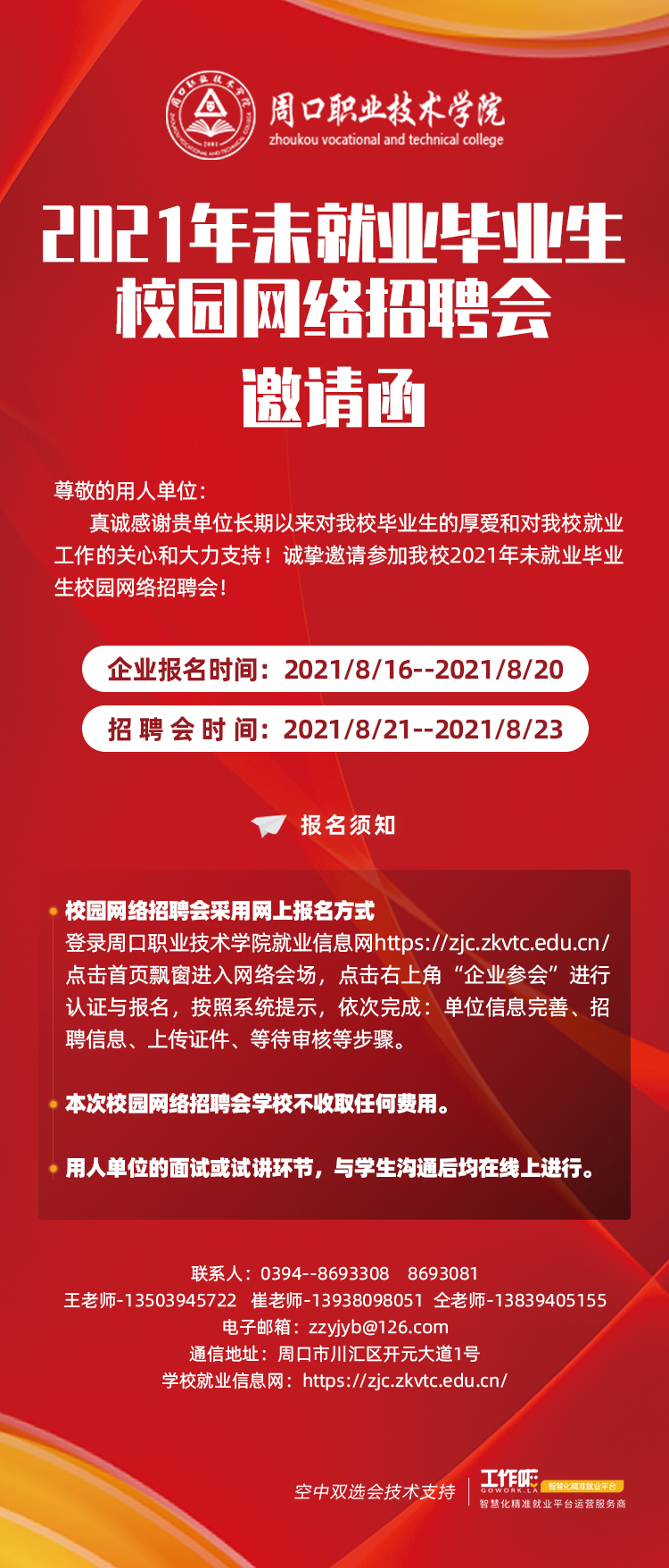 为更好的助力同学们的就业,诚邀各位参加本次伟德国际唯一官网 2021年末就业毕业生校园网络招聘会!
