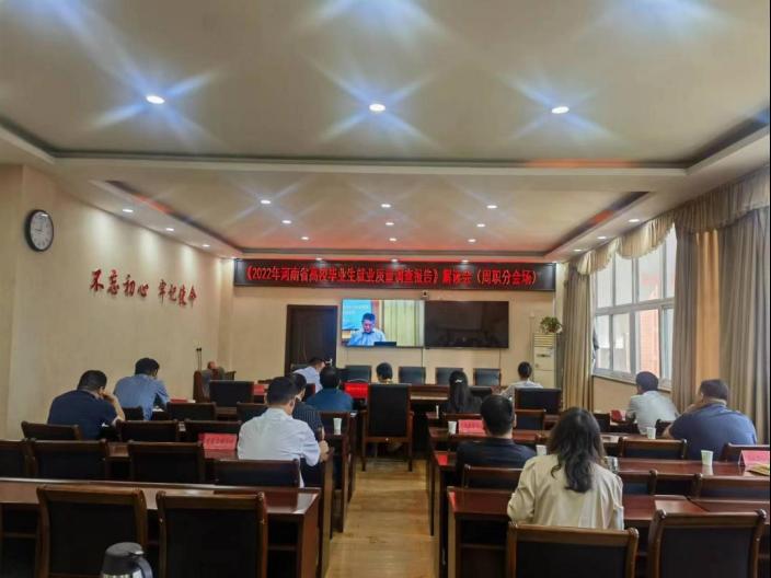 9月22日上午,公司在开元校区第三会议室设分会场,组织参加省教育厅《2022年河南省高校毕业生就业质量调查报告》解读会,副董事长李秀萍出席会议。党政办、教务处、员工处负责人,各二级院部党总支书记及人才招聘处全体人员参加会议。