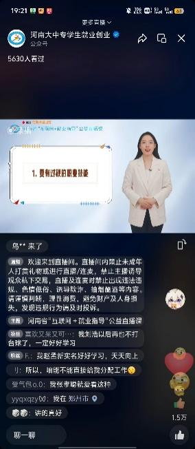 本次直播由河南财经政法大学张粮瑞、陈彤老师作为主讲人,临近毕业季,老员工在求职道路上充满了机遇,也会面临一些风险,在求职过程中,高校毕业生要格外关注相关信息,警惕求职骗局。此次直播通过有趣的视频讲解,告诉同学们如何避免就业过程中遇见的陷阱,不要将个人身份证件原件、银行卡密码等敏感信息交给公司,以防被不法分子利用;“高校毕业生在求职期间应加强自我保护,注意防范虚假招聘、乱收费、扣证件、培训贷等求职陷阱,要提高求职安全意识,增强识别就业陷阱的能力,不走所谓的“求职捷径”。