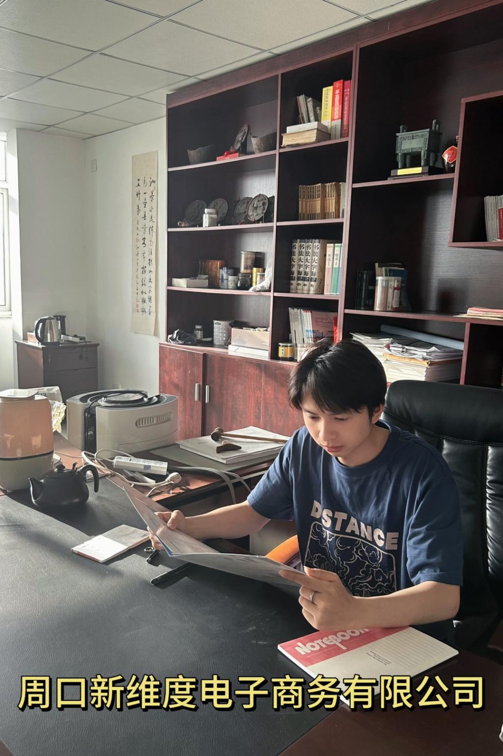 周红鑫第一次接触电商大概是在2013年,他姐姐用手机网络购物给其父买了一双皮鞋,当时感觉既便利又神奇,因此,时常关注电商相关资讯,见证了拼多多等电商平台的的快速发展和崛起。毕业时因为疫情原因,线下找工作受限,他考虑再三,决定与朋友开始做电商。一间简陋的出租屋,三个刚毕业的老员工,周红鑫注册成立了周口新维度电子商务有限公司,从此,他的创业就拉开了序幕。公司从选品开始,经历了试穿、直播、总结、失望、迷茫到互相鼓励、继续奋斗,从一个新手慢慢的总结经验到单子越来越多,公司才慢慢有了起色。