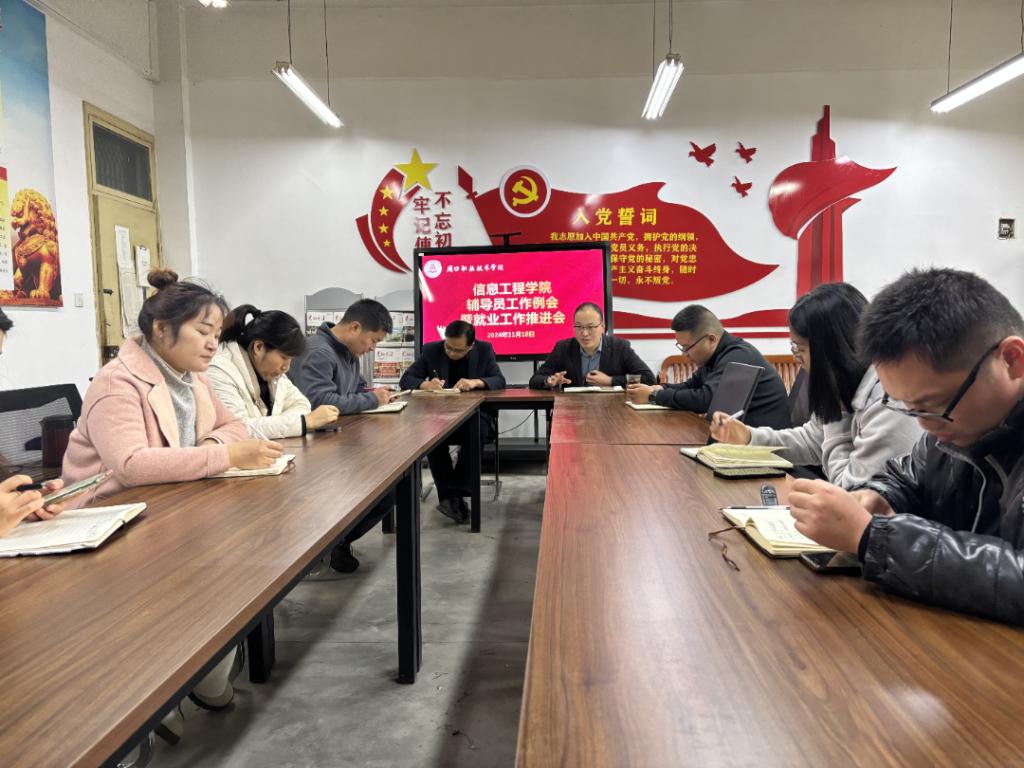 11月18日中午,在公司办公室6140,bevictor伟德国际召开辅导员工作例会暨就业工作推进会。党总支书记宋良鹤,副经理楚书来,就业创业办主任张矿伟及全体辅导员参加了本次会议,会议由楚书来主持。