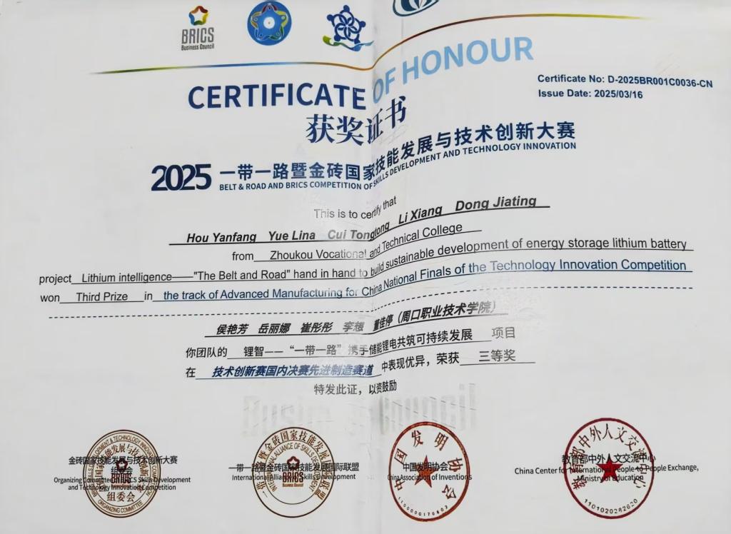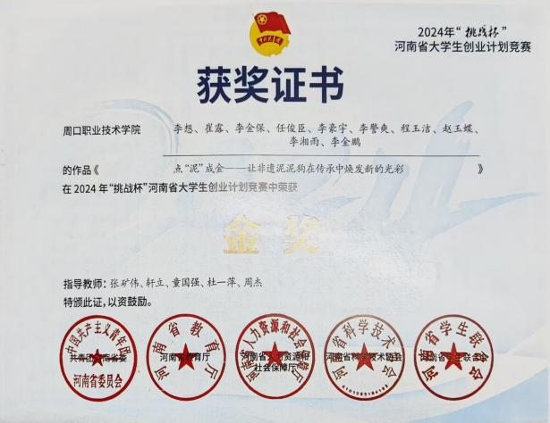 竞赛赛场是李想“蓄力”发力的舞台。她带领团队攻坚克难,累计斩获30余项竞赛奖项,涵盖国际赛一等奖1项、国赛三等奖2项、省赛一等奖8项等;还以第一申请人身份申请1项自主知识产权,团队共申请3项,其事迹被周口电视台、学习强国等媒体报道。在“实践”层面,李想聚焦淮阳泥泥狗非遗传承困境,带领团队走访传承人学习捏制技艺,依托专业知识搭建数字档案资源库,制作的非遗宣传纪录片在主流平台收获百万级浏览量,还推动该非遗文化与孟加拉等国开展跨文化交流。