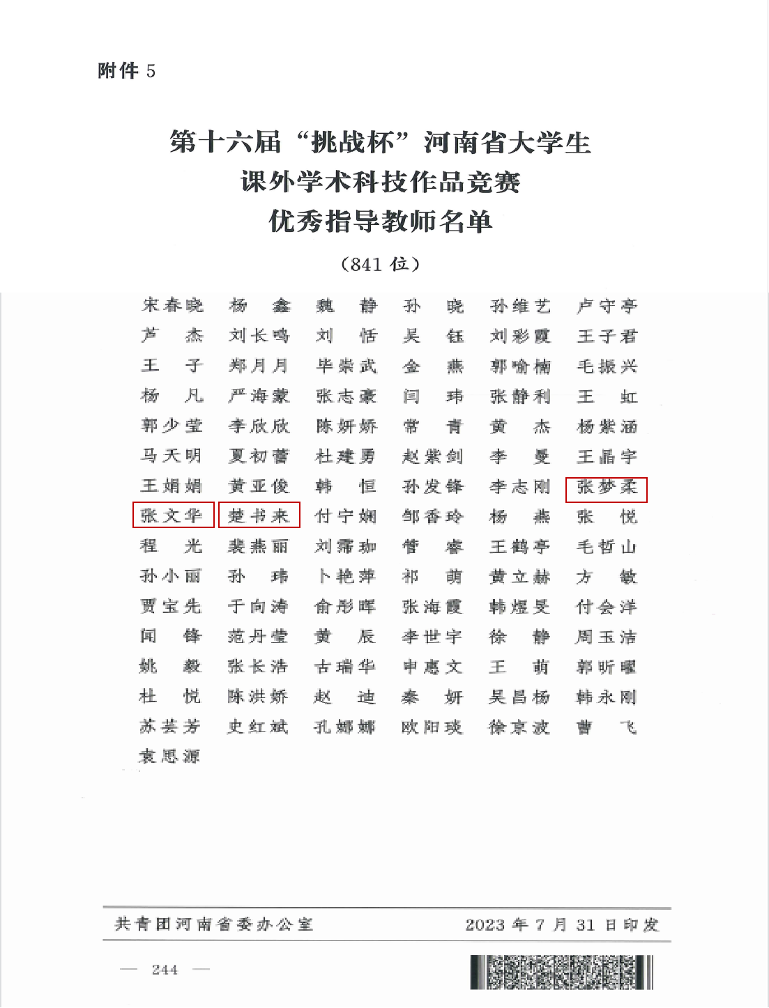 近日,由共青团河南省委、省教育厅、省社会科公司、省科学技术协会、省学联共同主办的第十六届“挑战杯”河南省老员工课外学术科技作品竞赛圆满结束。自接到大赛通知以来,bevictor伟德国际高度重视、积极宣传、广泛发动,最终喜获一等奖1项、二等奖2项、三等奖1项,张梦柔、张文华、楚书来三位老师被评为优秀指导老师,获奖数量创历史新高。